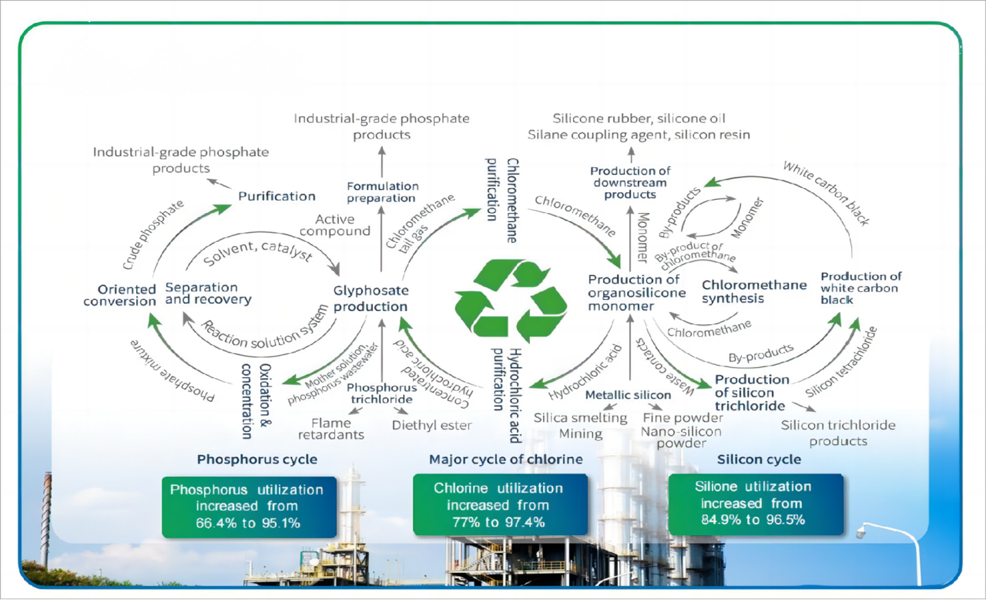 Unter Berücksichtigung der Prinzipien der grünen, ressourcenschonenden, umweltfreundlichen und sozial vorteilhaften Entwicklung nutzen wir neue Technologien, neue Materialien, neue Verfahren und neue Anlagen umfassend, um den energiesparenden und kohlenstoffarmen Wandel zu beschleunigen, den Synergieeffekt der Schadstoff- und Kohlenstoffreduzierung zu erzielen und das dreigliedrige Kreislaufwirtschaftsmodell von Chlor, Phosphor und Silizium kontinuierlich zu vertiefen, wodurch der ökologische Hintergrund einer qualitativ hochwertigen Entwicklung aufgehellt wird.