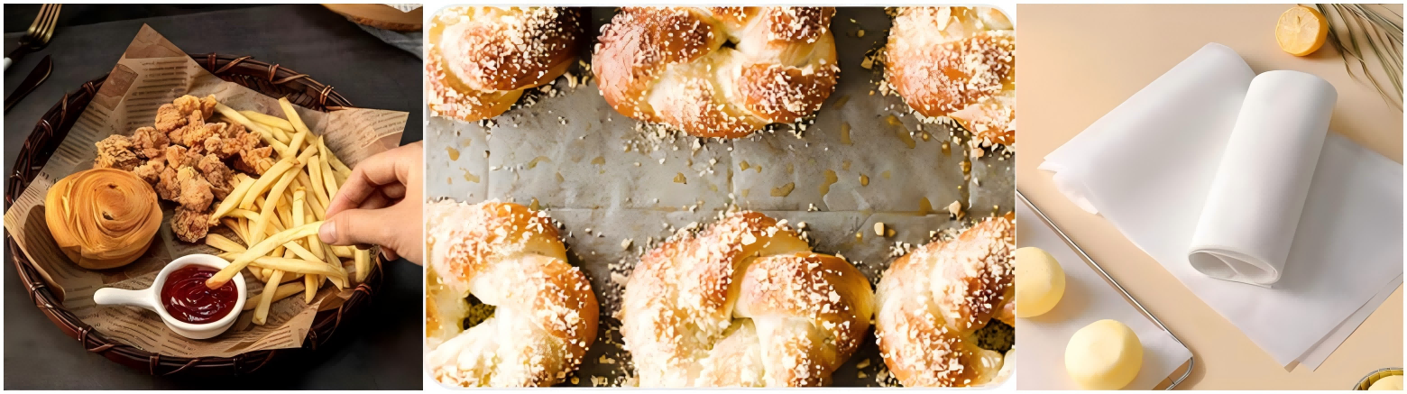 Niedrige OberflächenenergieMit einer kritischen Oberflächenspannung von 19–24 dyn/cm (deutlich niedriger als die von Fett, die etwa 30 dyn/cm beträgt) minimieren sie das Anhaften von zuckerreichen oder fettreichen Teigen und gewährleisten so eine automatische Trennung zwischen Lebensmittel und Papier während des Backens.