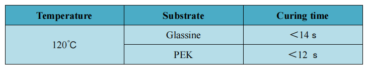 (Die Aushärtungszeit ist definiert als die minimale Aushärtungszeit ohne Verschmieren, ohne Abrieb und Migration der Trennbeschichtungsschicht)